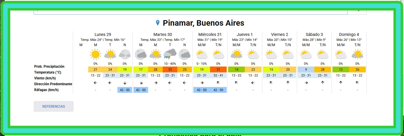 PRONÓSTICO DEL TIEMPO Y PROYECCIÓN PARA LOS PRÓXIMOS 6 DÍASLigeramente nublado - Humedad: 77 % Presión: 1011 hPa Viento: Sudeste a 8 km/h Visibilidad: 10 km Sol: 05:28 Puesta de Sol: 20:10 DEPORTES