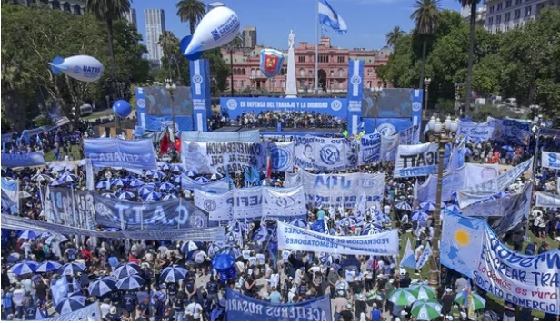 LA CGT CON UNA DEMOSTRACIÓN DE FUERZA EN PLAZA DE MAYO, CRÍTICAS AL GOBIERNO Y PLAN DE LUCHA