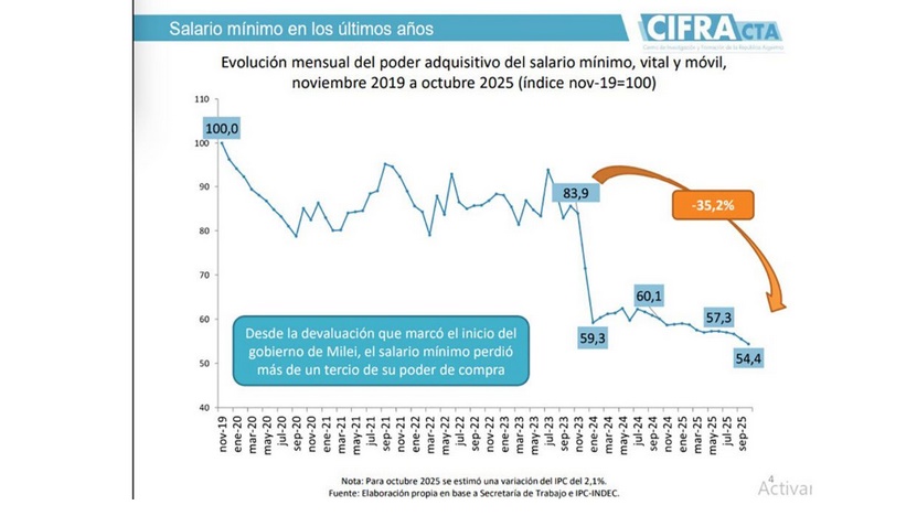 HOY MIÉRCOLES LAS DOS CTA SE MOVILIZARÁN HACIA LA SECRETARÍA DE TRABAJOLas fracciones de la Central de Trabajadores y la Autónoma se movilizarán este miércoles a las 11 hacia la Secretaría de Trabajo, que conduce Julio Cordero, en reclamo de un salario mínimo, vital y móvil “por encima de la pobreza”. El secretario general de CTA-Autónoma, Hugo ‘Cachorro’ Godoy, sostuvo que la convocatoria que hizo el Gobierno para el Consejo del Salario Mínimo Vital y Móvil “debería haberla hecho tres meses atrás”. ...LEER MÁS .... ECONOMÍA
