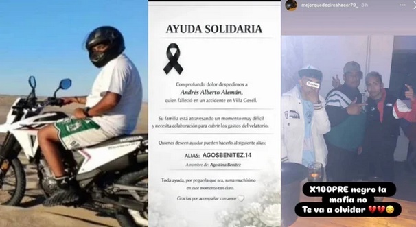 Tras la trágica muerte de Andrés Alberto Alemán durante el desarrollo del 31° Enduro del Verano en Villa Gesell, el entorno del motociclista inició una campaña para recaudar fondos. El hombre, oriundo de Ensenada, era investigado por sus presuntos vínculos con el narcotráfico. ....LEER MÁS ...