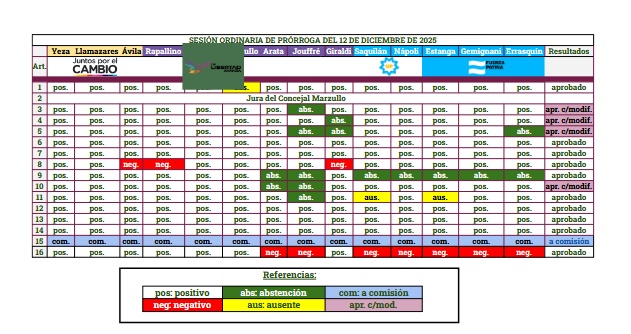PRIMERA SESIÓN DE PRORROGA EN EL HCD: NUEVA CONFORMACIÓN DEL CUERPO DE CONCEJALESEsta viernes 12 de diciembre de 2025 se llevó a cabo primera de las sesiones de prórroga establecidas previamente, con el debut de los nuevos concejales electos. Siendo las 09:05 hs. y bajo la presidencia del Dr. Rapallino, da inicio la sesion del dia de la fecha, con el tratamiento del siguiente Orden del Dia: 1. Licencia Concejal Apolonio . Aprobado por unanimidad , por lo que a continuación, se pasó al punto 2. Jura Concejal Marzullo. Ya con él flamante concejal en su banca, se dio tratamiento a los expedientes que conformaron el Orden del Día. ...LEER MÁS .... NACIONALES