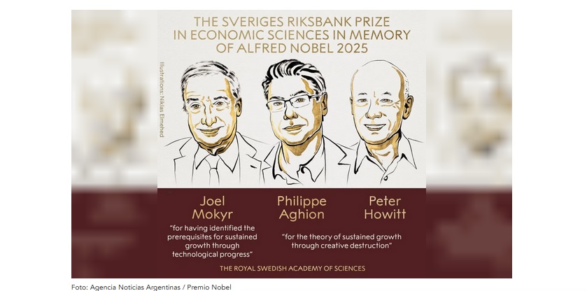 EL PREMIO NOBEL DE ECONOMÍA 2025 FUE OTORGADO A JOEL MOKYR, PHILIPPE AGHION Y PETER HOWITTEl Premio Nobel de Economía 2025 fue otorgado este lunes a Joel Mokyr, Philippe Aghion y Peter Howitt “por haber explicado el crecimiento económico impulsado por la innovación”. La mitad del premio corresponde a Mokyr “por haber identificado los prerrequisitos para un crecimiento sostenido a través del progreso tecnológico”; mientras que la otra mitad es para Aghion y Howitt “por la teoría del crecimiento sostenido a través de la destrucción creativa”. ...LEER MÁS ... NACIONALES
