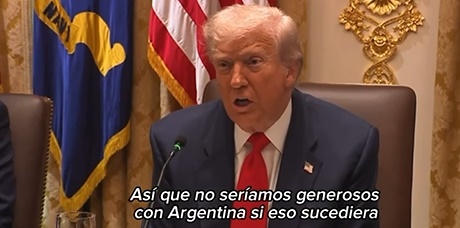 TRUMP CONDICIONÓ LA AYUDA A MILEI AL RESULTADO ELECTORAL: "SI PIERDE, NO SEREMOS GENEROSOS"El presidente Javier Milei y la comitiva argentina mantienen un almuerzo en la Casa Blanca junto a su par Donald Trump y al titular del Tesoro, Scott Bessent, luego de que se confirmara la asistencia financiera otorgada a la Argentina. Trump le brindó un fuerte respaldo a Milei, pero lo ligó al resultado de las próximas elecciones legislativas: "Si Milei pierde las elecciones, no seremos generosos con Argentina". ...LEER MÁS ... ECONOMÍA