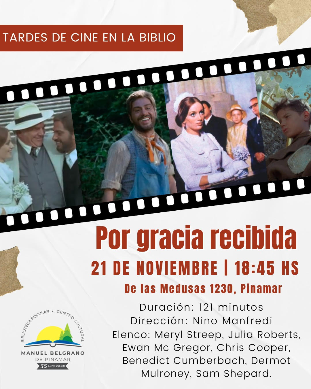 TARDES DE CINE EN LA BIBLIOTECA PUPULAR MANUEL BELGRANO DE PINAMAREste viernes tendremos la última función del año de Tardes de Cine, donde se proyectará POR GRACIA RECIBIDA .......CONTINUAR LEYENDO ..... INTERNACIONALES