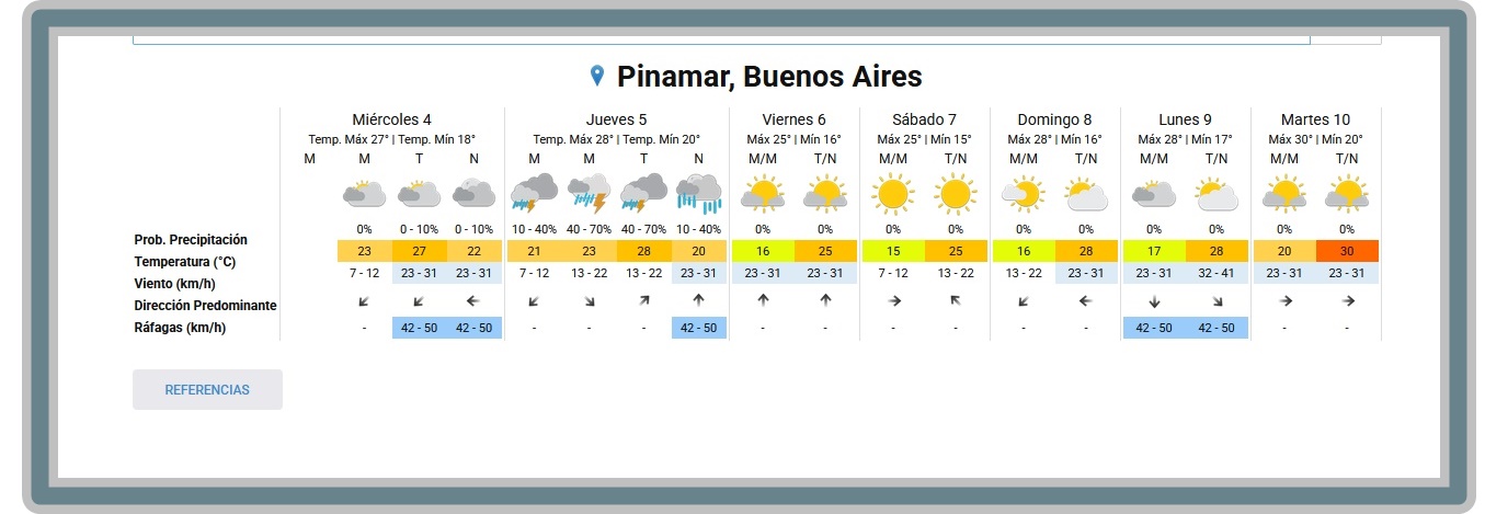 PRONÓSTICO DEL TIEMPO EN PINAMAR PARA ESTE MIÉRCOLES 4 Y PROYECCIÓN PARA LOS PRÓXIMOS 6 DÍASNublado - Humedad: 92 % Presión: 1005.8 hPa Viento: Noreste a 10 km/h Visibilidad: 10 km Sol: 06:06 Puesta de Sol: 19:56 SAN CARLOS DE BARILOCHE