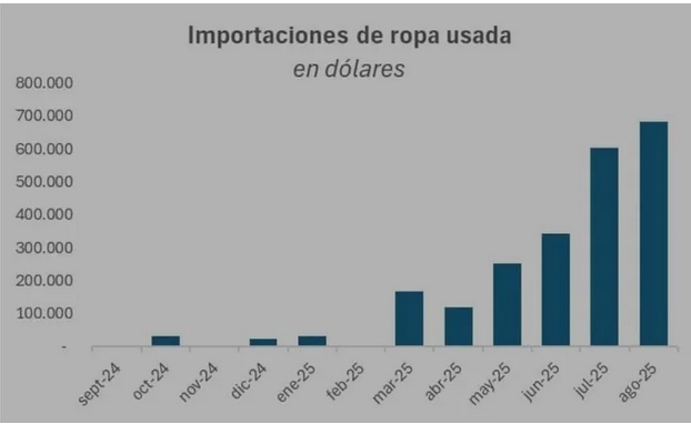 SE DISPARA LA IMPORTACIÓN DE ROPA USADALa importación de ropa usada se multiplicó por más de 40 en los primeros ocho meses de 2025 en comparación con todo el 2024, según cifras de la Cámara Argentina de la Indumentaria. Los volúmenes todavía son bajos pero el crecimiento es vertiginoso. Se trata de una maniobra que estaba prohibida por cuestiones sanitarias y ambientales pero a la que el Gobierno ahora le da rienda libre. ...LEER MÁS .... POLÍTICA